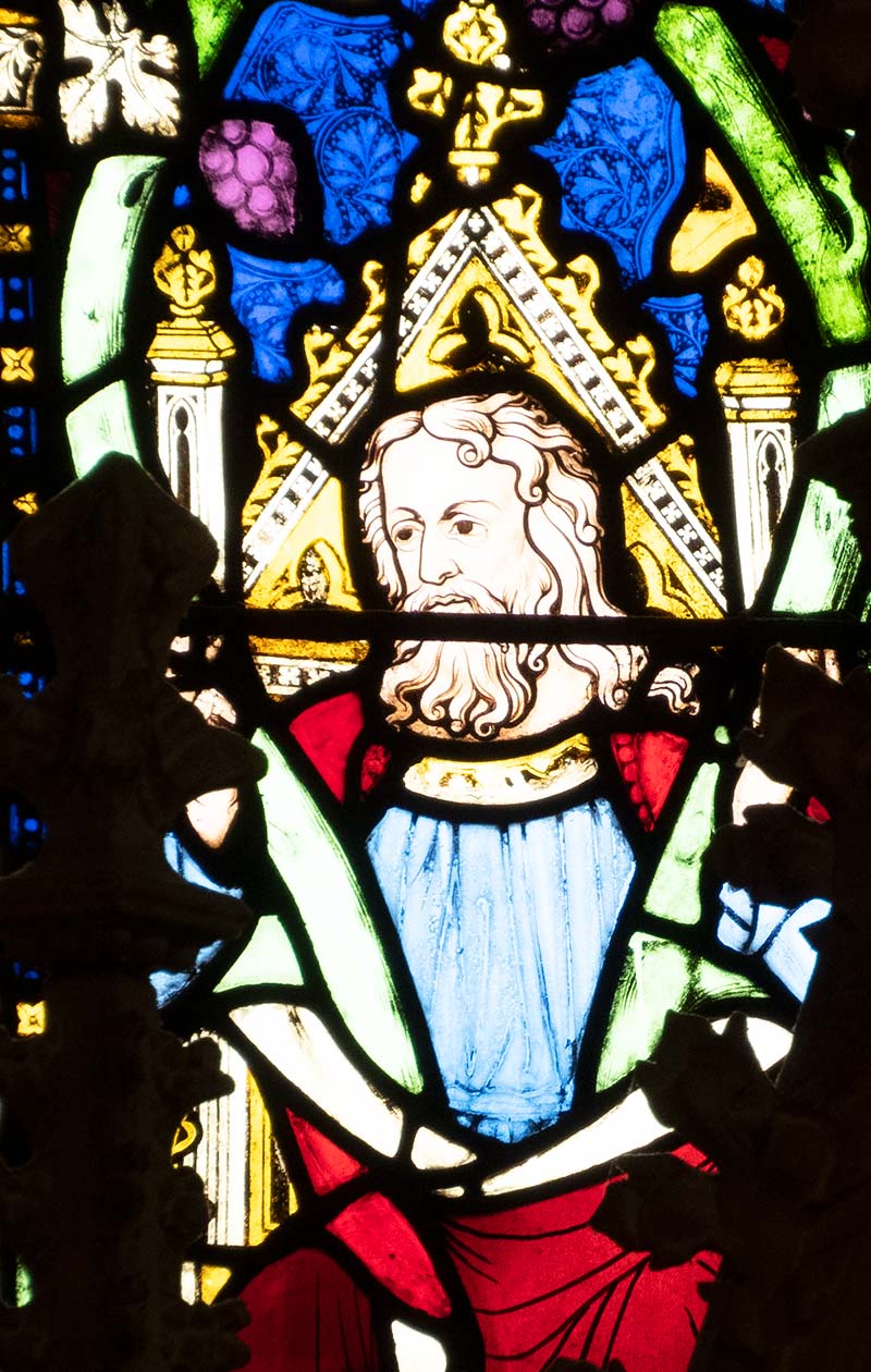 Jesse is shown seated at the bottom of the centre light, slightly obscured by the reredos.