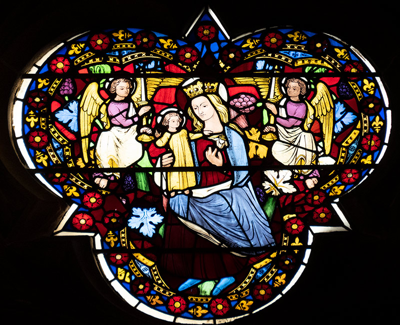 At the top Mary is shown with the infant Jesus standing on her knee.