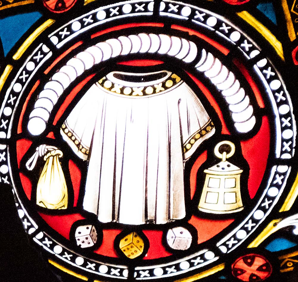 WINDOW DETAIL: Christ’s Garment and the dice used to cast lots for it